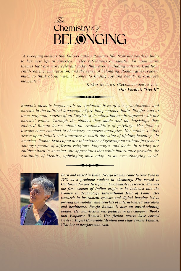 The Chemistry of Belonging is a deeply personal and reflective memoir that delves into Neerja Raman’s life story, exploring themes of family, identity, and belonging. Through a series of interconnected stories, the book takes readers on a journey across time and geography, from Raman’s childhood in India to her experiences living and working in different parts of the world.